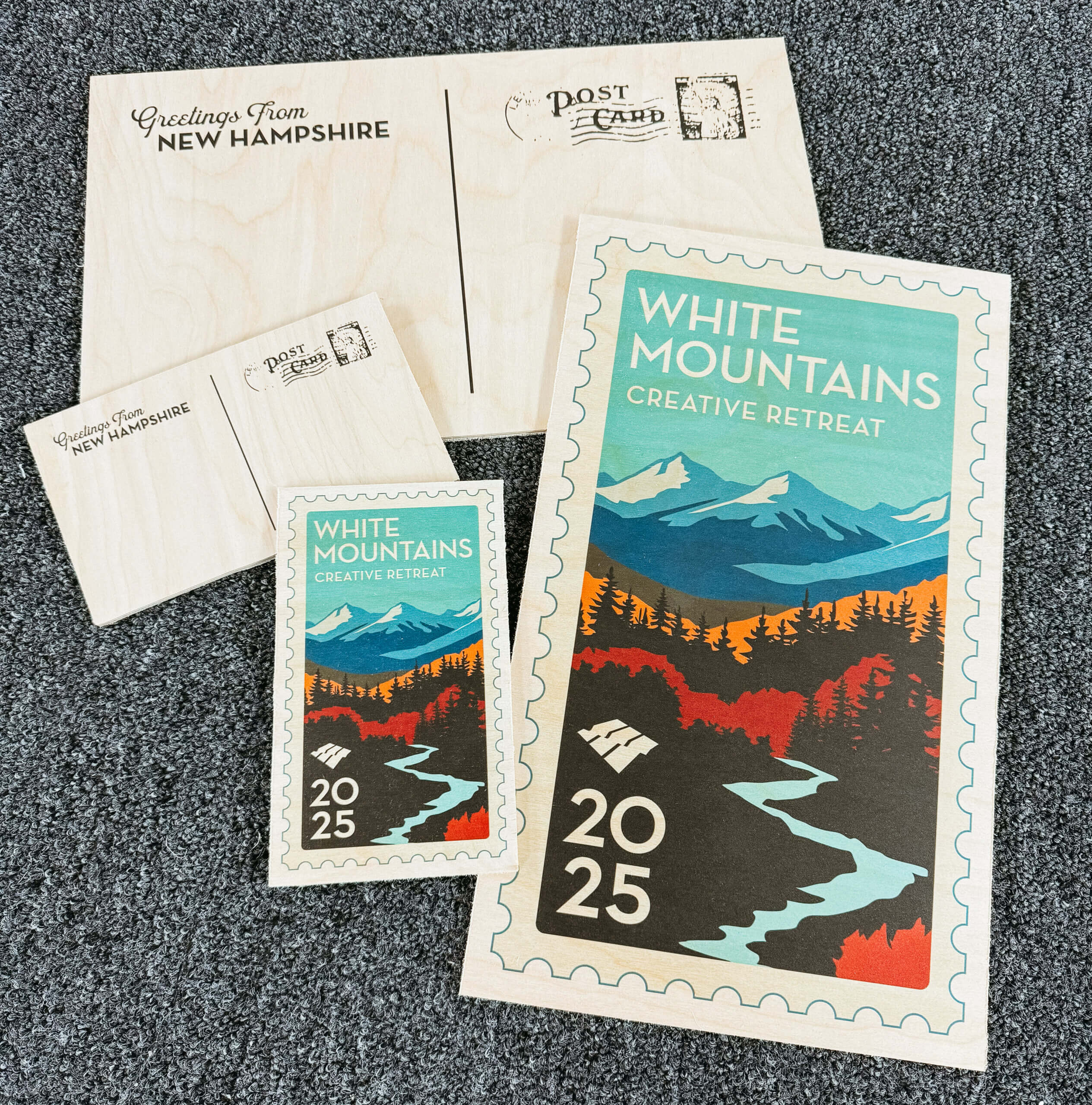The retreat began in Portland, Maine, where the group’s first impressions were shaped by the city’s waterfront character – lobster rolls along cobbled streets, seagulls circling the pier, and winds rolling off the Atlantic at the nation’s oldest lighthouse. Soon after, they crossed into New Hampshire’s White Mountains where their deeper exploration began. Waiting for each participant was a custom Summer Creative Retreat tote stocked with creative tools including sketchbooks, watercolors, pencils, and a hand-crafted accordion notebook to fill page by page throughout the week. A woodcut stamp, designed by Principal Jeff Raudabaugh in collaboration with the Branded Environments team, served as a personal mark for the thoughtful journey ahead.