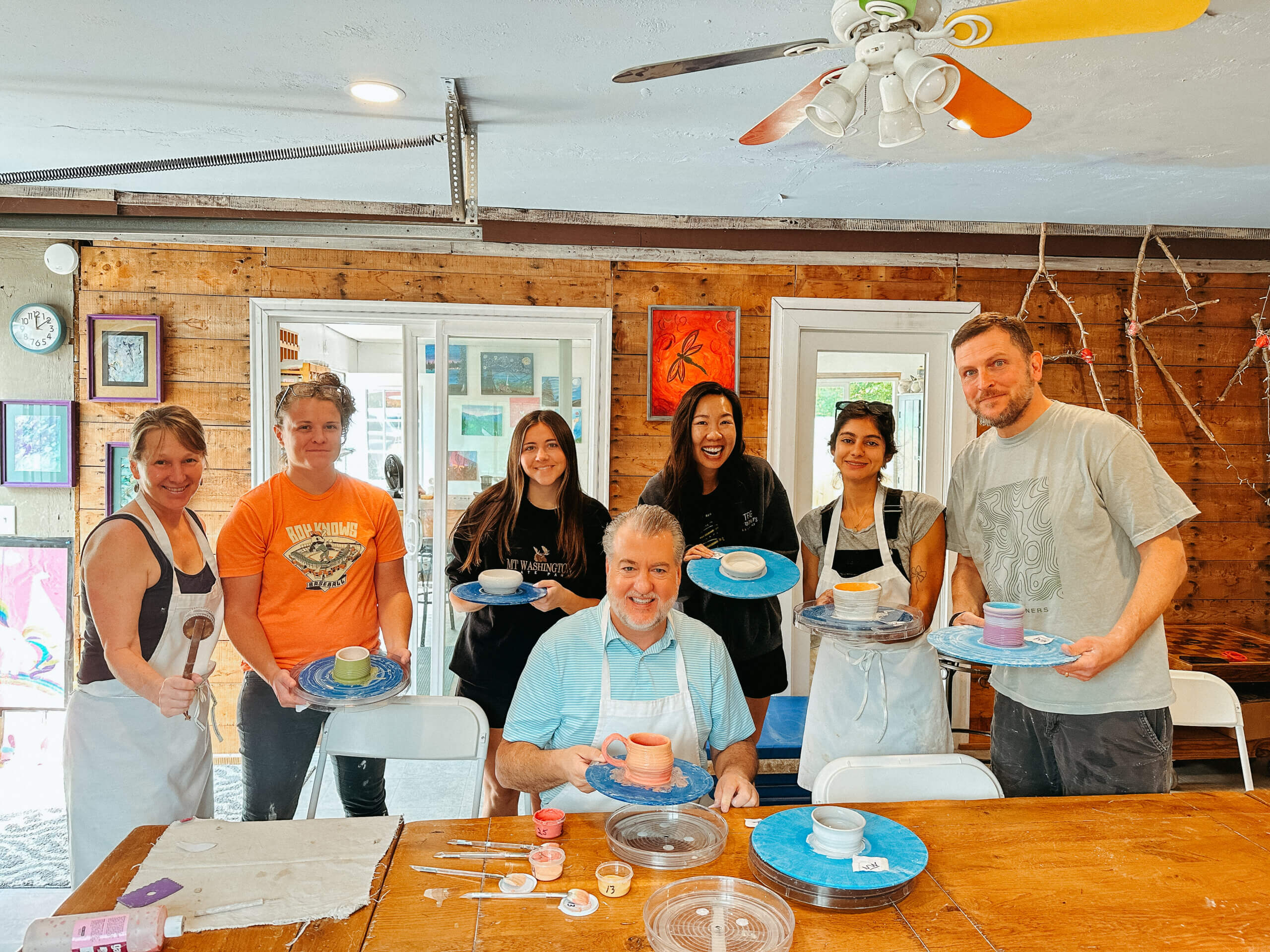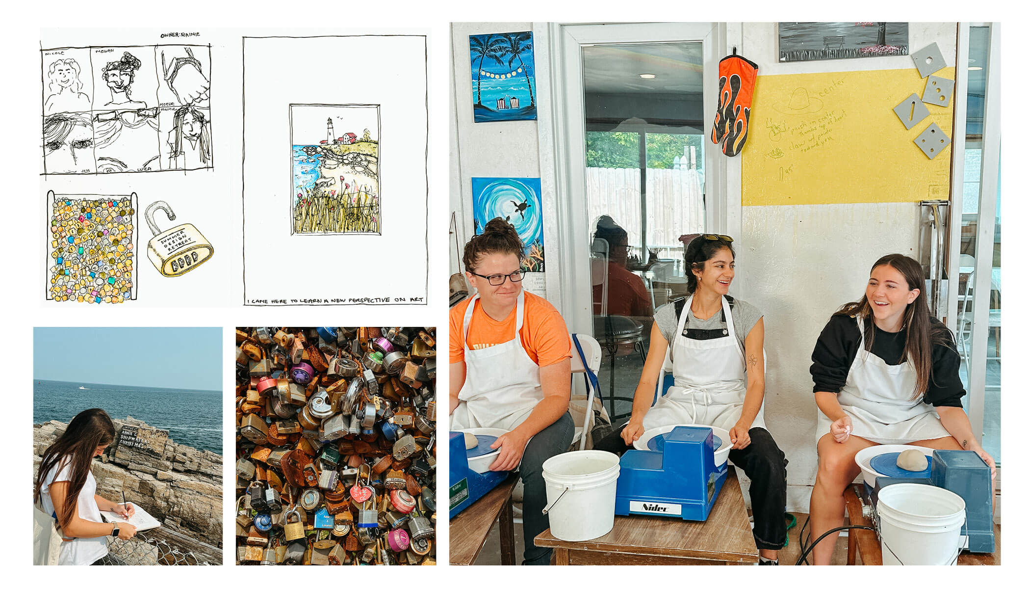 To round out the retreat experience with a sense of local culture, the group explored color theory and craft at the New Hampshire League of Craftsmen Fair. There, they sketched in watercolor pencil and spoke with artisans about their processes, translating conversations into small thumbnail drawings that captured each step. The week closed with a hands-on pottery class at Fired on the Mountain, a local studio. Throwing clay proved to be a fitting finale – an exercise in slowing down, focusing on fundamentals, trusting the process, and giving creativity room to surface.